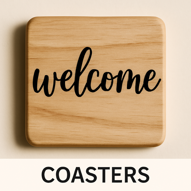 • Type of item: round sign, square sign, coaster set, shelf sitter, etc.